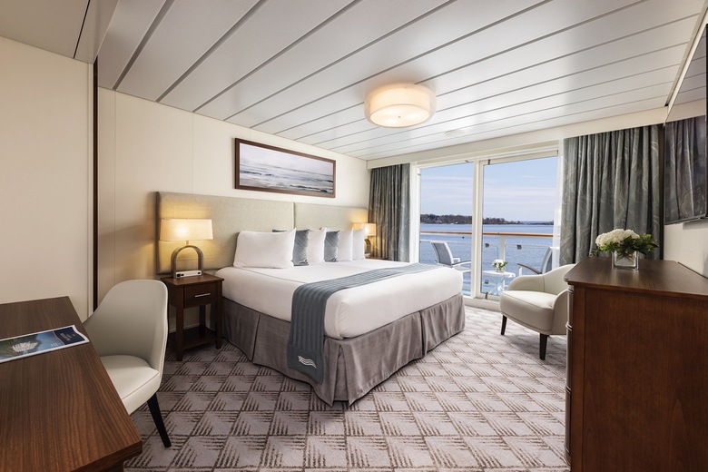Located on the 4th deck with a generous 405 sq. ft. of relaxing space, each Veranda Suite provides the perfect balance of comfort and luxury. Considered one of the finest staterooms on any cruise ship, guests will enjoy full-size bathrooms and a large living area complete with sliding glass door. Be treated to a fruit and cheese plate when you arrive and cheers with a complimentary bottle of premium champagne as you begin your adventure. Your in-suite mini-refrigerator will be fully stocked and replenished throughout your cruise with juices, waters, white and red wine. All suites include a private walk-out balcony where you can enjoy “suite treats” delivered to you each evening and take in the breathtaking views.